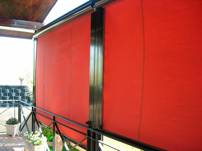 Pueden ser toldos de caída vertical, guiados por guías de aluminio; toldos con deslizamiento lateral, idoneos para separar espacios en terrazas, patios, piscinas, etc...; o toldos cortavientos, los más habituales para combatir el viento en terrazas de restaurantes, bares, etc... Todos estos modelos de toldos disponen de Cofre, aportando más calidad, estética y durabilidad al producto.